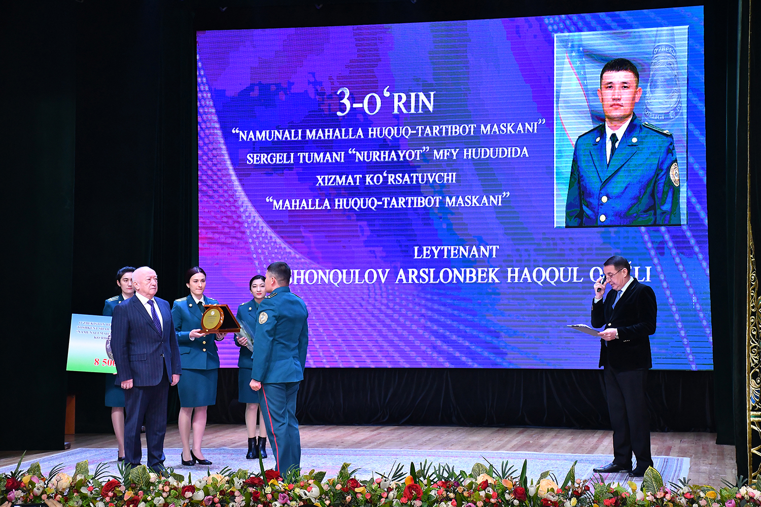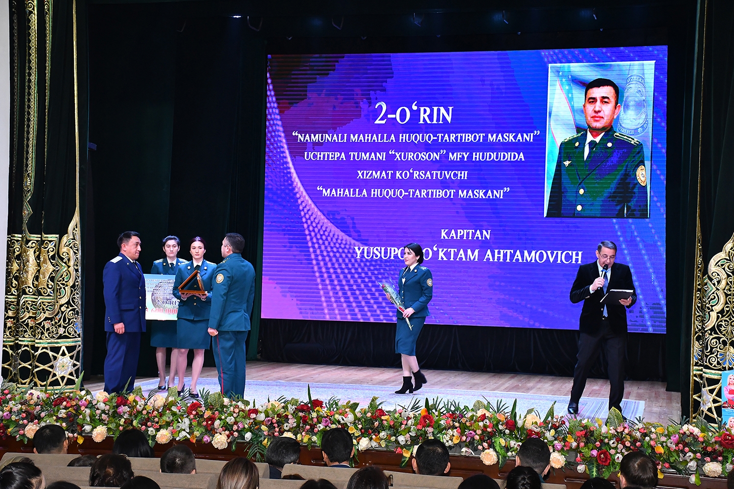 Была особо отмечена деятельность по повышению социальной роли органов внутренних дел, установлению тесного сотрудничества с общественностью, проводимая на основе принципа «Все во имя чести и достоинства человека». Благодаря подобному подходу совместно с органами самоуправления граждан обеспечивается безопасная среда в махаллях, решаются проблемы граждан.