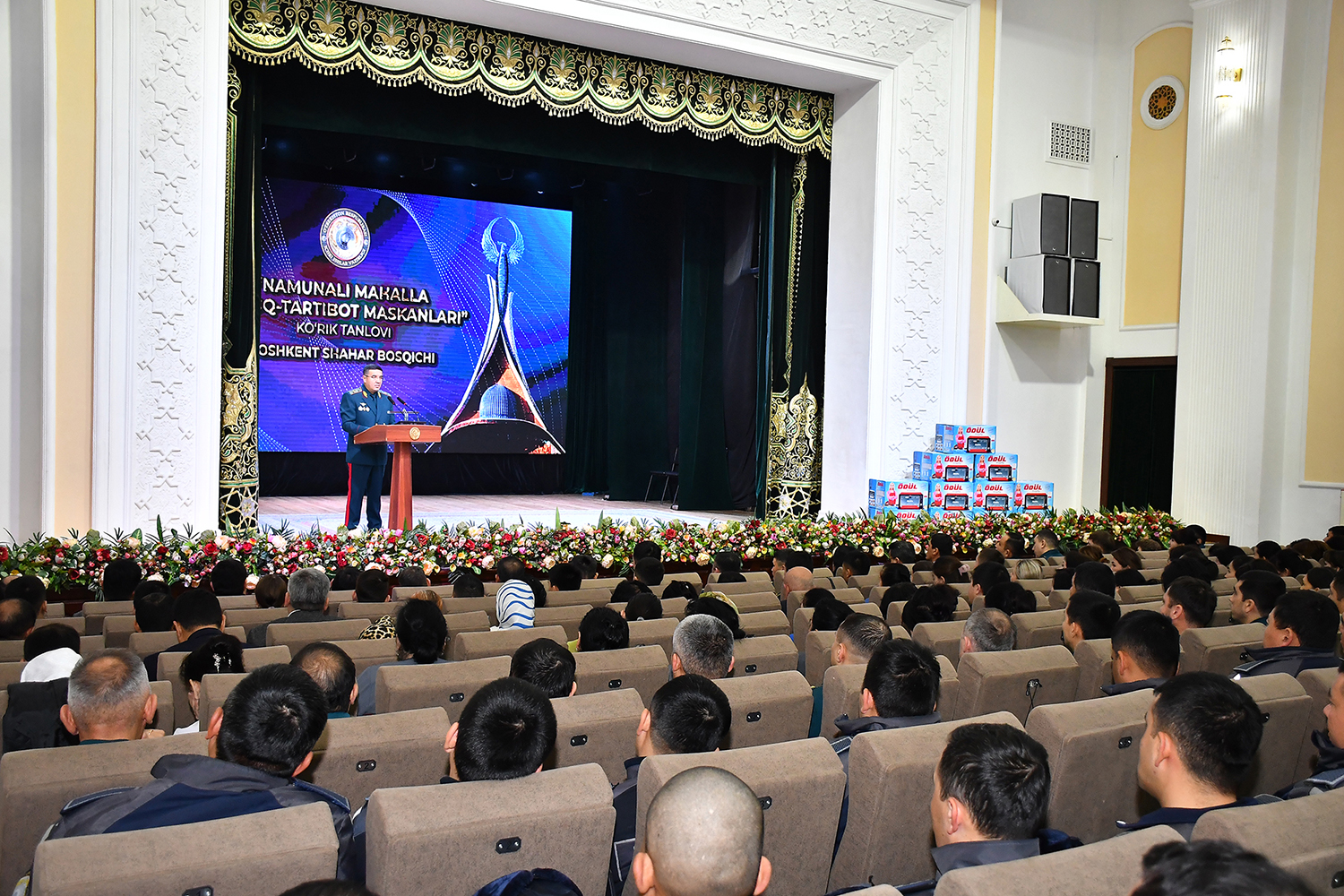 В целях дальнейшего совершенствования деятельности махаллинских пунктов правопорядка, достойного поощрения проводимой работы по созданию безопасной среды в махаллях на основе принципа «Благоустроенная и безопасная махалля» во Дворце культуры МВД республики состоялся городской этап смотра-конкурса «Образцовый махаллинский пункт правопорядка» среди сотрудников ГУВД Ташкента.