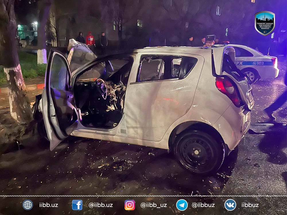 26 марта 2022 года примерно в 22:00 часов на улице Ковунчи в Учтепинском районе 22-летний Исломбек М., находясь за рулём автомобиля марки «Spark» (госномер 01 U 286 HB), не справился с управлением и столкнулся с деревом на обочине дороги. Вскоре после того, как водителя и пассажира оказавшиеся поблизости люди извлекли из транспортного средства, в двигателе произошло короткое замыкание, в результате которого началось возгорание. Оно было потушено оперативно прибывшими на место пожарными расчётами.