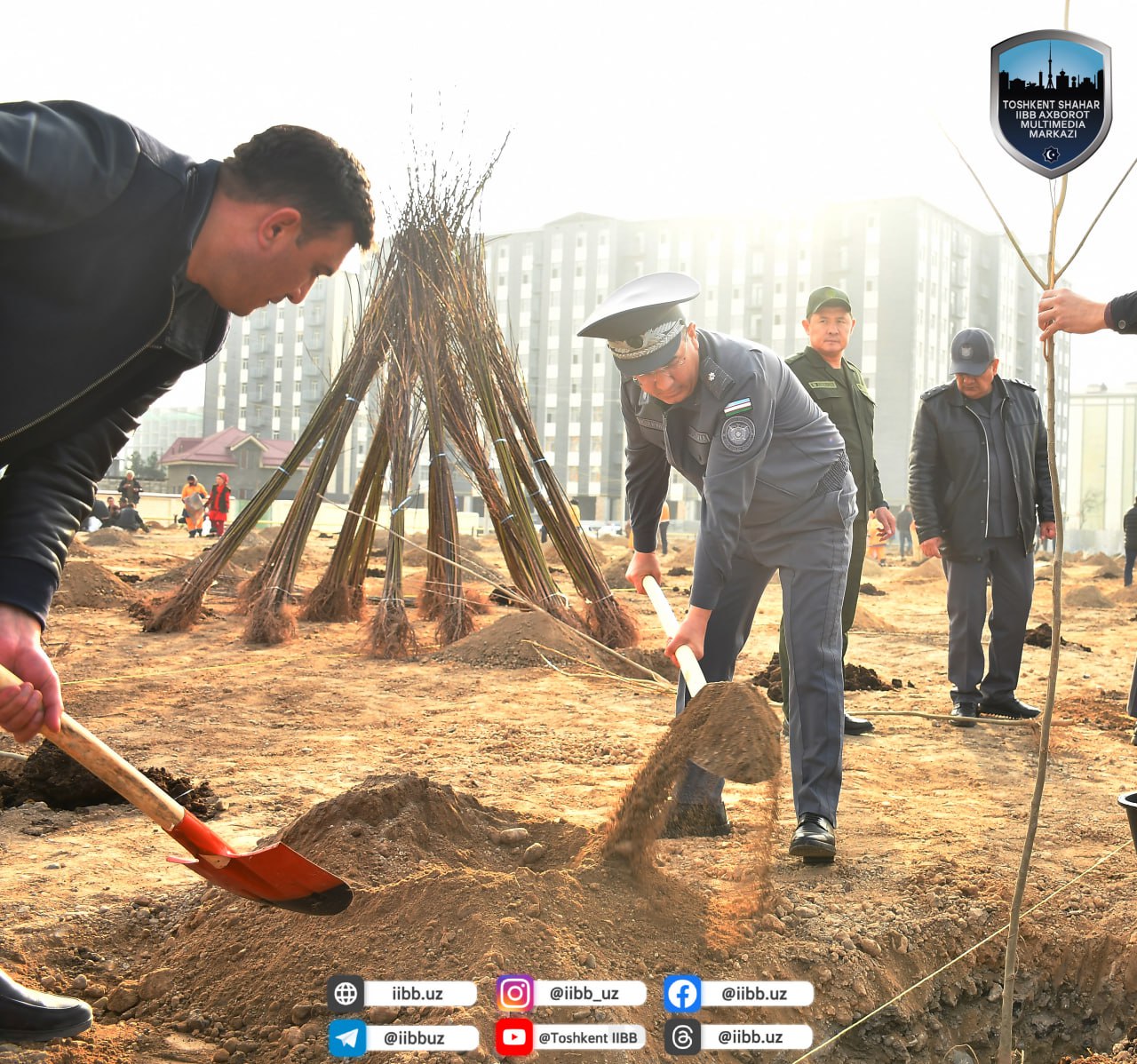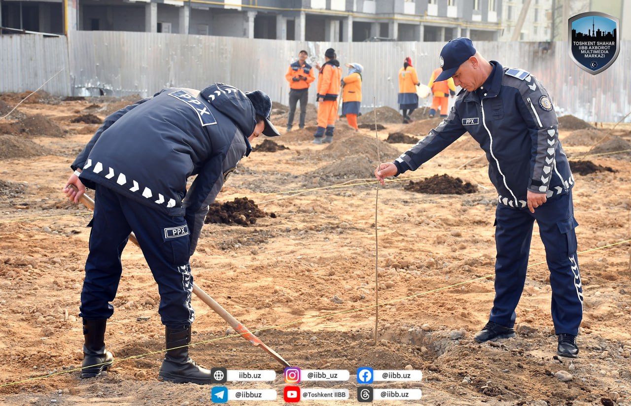 В эти дни продолжается акция «Зеленое пространство». Особое внимание этому проекту ежегодно уделяет ГУВД города Ташкента. Сотрудники ОВД также способствуют созданию зеленых зон в районах столицы. В рамках проекта «Зеленое пространство» в махалле «Хушнуд» Янгихаётского района сотрудниками ГУВД Ташкента создается зеленая зона.