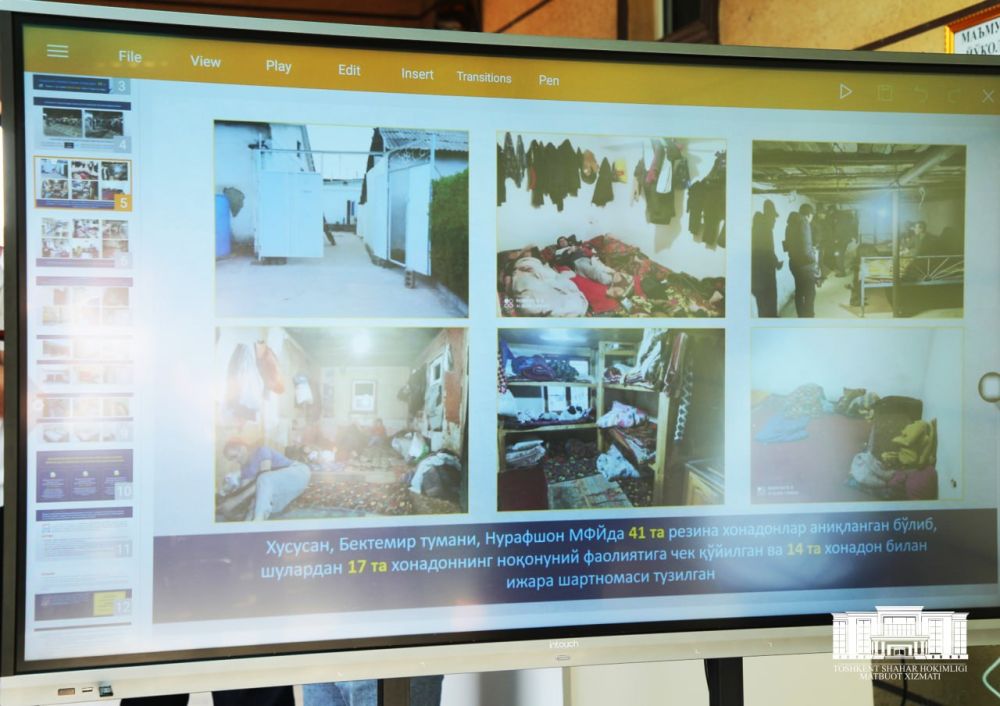 В рамках совместного выезда хокимов, руководителей УВД, ГНИ, прокуратуры районов столицы, представителей управления юстиции и других структур были рассмотрены меры, направленные на предотвращение появления незаконных «резиновых» домов, обеспечение прозрачности деятельности хостелов и гостевых домов, а также повышение безопасности населения.