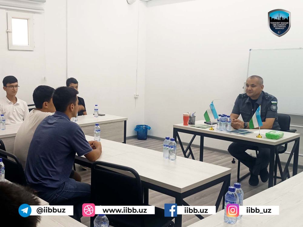 В махалле Кукча Дарвоза Шайхантахурского района начальник УКД ОВД района провёл встречу с махаллинской молодёжью. В рамках мероприятия был организован выездной приём, где были выслушаны проблемы, предложения и требования молодёжи махалли, изучен вопрос оказания им помощи через «молодёжную тетрадь».
