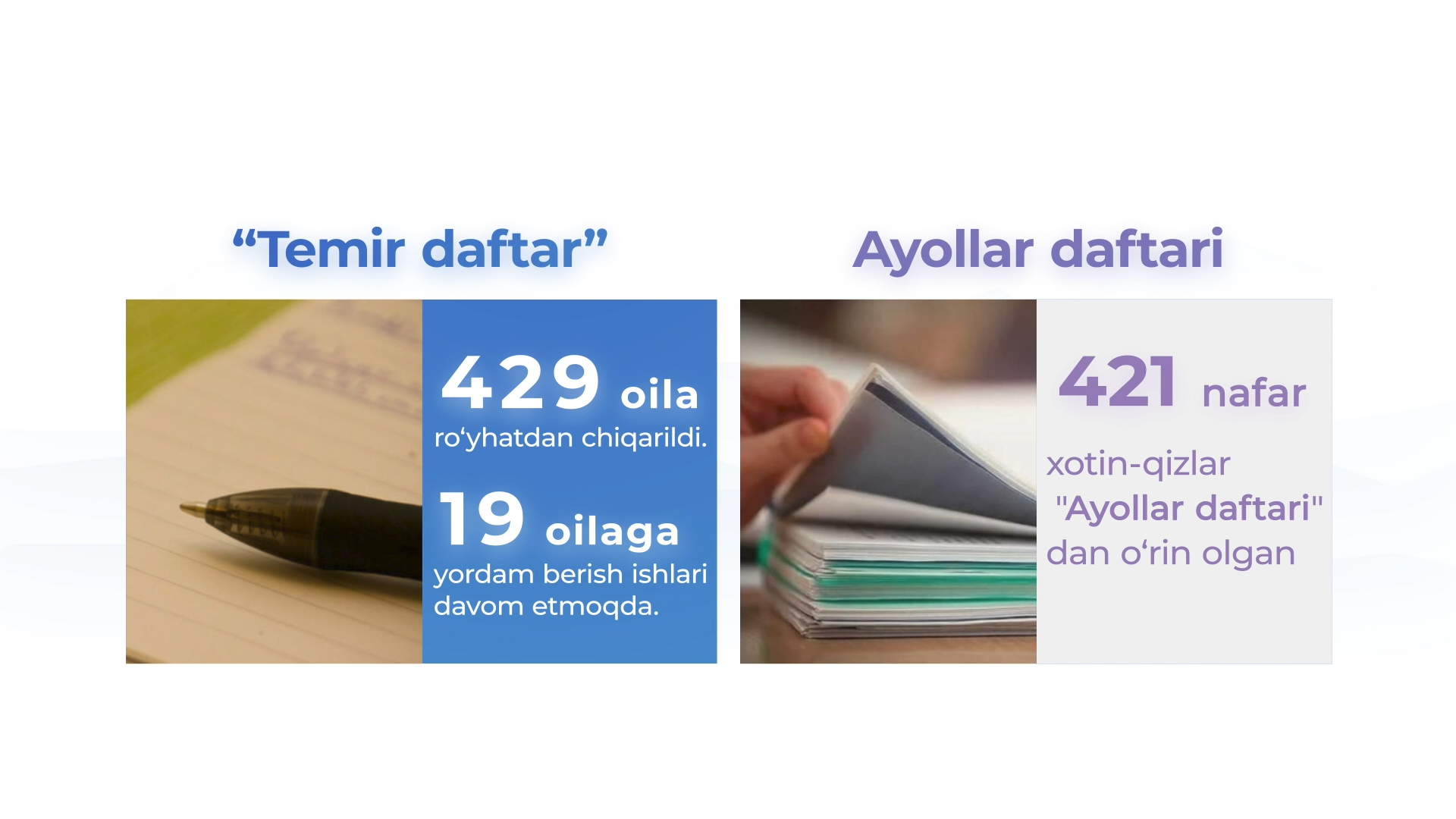 Делая акцент на основной деятельности третьего сектора, надо отметить, что за отчетный период была оказана посильная помощь гражданам, внесенным в списки «железной», «женской» и «молодежной» тетрадей. В частности, с начала года из списка «железной» тетради были выведены 429 граждан. Оставшимся 19 семьям оказывают необходимую помощь.