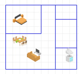 - Mebel belgisini bosing va sichqonchani katakning mos joyiga olib boring. Keyin sichqoncha tugmachasini bosing. Masalan kravat belgisini bosib, sichqonchani yotoq xona rejasi ustiga olib boring va bosing, shunda kravat yotoqxona rejasi ustiga qo’yiladi.