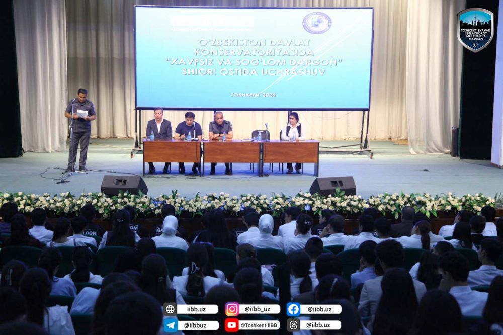 Шайхонтоҳур тумани ИИО ФМБ бошлиғи полковник Отабек Жамолов Ўзбекистон Давлат Консерватория талабалари ва Ботир Зокиров номидаги Миллий Эстрада санъати институти талабалари билан "Хавфсиз ва соғлом даргоҳ" шиори остида давра суҳбати ўтказди. Унда талаба-ёшлар орасида гиёҳвандлик ва психотроп дори воситалари тарқалишининг олдини олиш, кибержиноятлар қурбонига айланмаслик учун нималарга риоя қилиш юзасидан тавсиялар берилди. Учрашувда талабалар ўртасида содир этилаётган жиноятчилик ва унинг олдини олиш, ёшлар ўртасида соғлом муҳитни шакллантиришга эътибор қаратилди. Шунингдек талаба ёшлар ўзларини қизиқтирган саволлари билан туман ИИО ФМБ бошлиғига мурожаат қилишди. Очиқ мулоқот шаклида ўтган мазкур учрашувда талабалар кўплаб қизиқарли маълумотларга эга бўлишди.