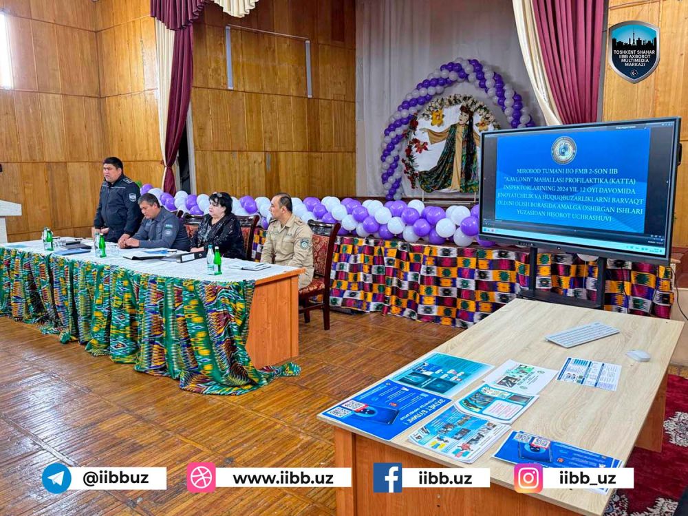 Худди шундай ҳисобот йиғилишида туманнинг 2-сон ИИБ “Абдулла Авлоний” маҳалла профилактика катта инспектори, майор А.Режаматов томонидан амалга оширилган ишлар тингланди. Мазкур йиғилишда туман ИИО ФМБ бошлиғининг Ҳуқуқбузарликлар профилактикаси масалалари бўйича ўринбосари, подполковник Ш.Мирзаев, 2-сон ИИБ бошлиғи, подполковник Б.Адилов, Миллий гвардия “Қўриқлаш” хизмати Миробод туман бўлими бошлиғи, подполковник Р.Исламов, маҳалла еттилиги, фаоллари ҳамда мутасадди корхона-ташкилотлар раҳбарлари қатнашдилар. Майор А.Режаматов йиғилганларни ўзига бириктирилган ҳудудда маҳалла фаоллари, маҳалла еттилиги ҳамда ҳамкор корхона-ташкилотлар билан жиноятчиликка қарши кураш, ҳуқуқбузарликларнинг олдини олиш борасида амалга оширилган ишлар баробарида, содир этилган жиноятлар ва ҳуқуқбузарликларнинг таҳлили бўйича ахборот берди. Ҳар икки йиғилишда сўзга чиққан подполковник Ш.Мирзаев профилактика инспекторларининг ҳисоботларини тинглар экан, айрим йўл қўйилган камчиликларга эътибор қаратиб, келгусида ҳамкорликни янада кучайтириш, аҳолининг кенгроқ қатламлари билан манзилли тушунтириш-огоҳлантириш, профилактик тадбирлар ўтказиш лозимлигини таъкидлади. Шунингдек. Ўзбекистон Республикаси Президентининг “2025 йилда Республика маҳаллаларида ҳавфсиз муҳитни яратиш ва ҳуқуқбузарликларнинг барвақт олдини олиш тизими самарадорлигини янада ошириш бўйича чора-тадбирлари тўғрисидаги” Қарорининг мазмун-моҳиятига тўхталиб, унда белгиланган бандларга эътибор қаратиш, қарор ижросини таъминлаш бўйича самарали чора-тадбирларни амалга оширишга эътибор қаратди. Бу каби ҳисобот тадбирлари пойтахтимизнинг барча туманларида давом этмоқда.