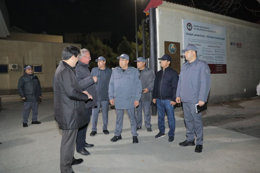 Ўрганишлар давомида Мирзо Улуғбек тумани “Янги Олмачи” маҳалласида жойлашган “Жаҳон иқтисодиёти ва дипломатия университети” ётоқхонасидаги хавфсизликка оид шароитлар, электр ва иссиқлик энергияси таъминоти ҳамда авариявий ҳодисаларни олдини олиш ва бартараф этиш чоралари ўрганилди. Фаол талабалардан ташкил топган “Қалқон” гуруҳи иштирокчилари билан суҳбатлашилди.