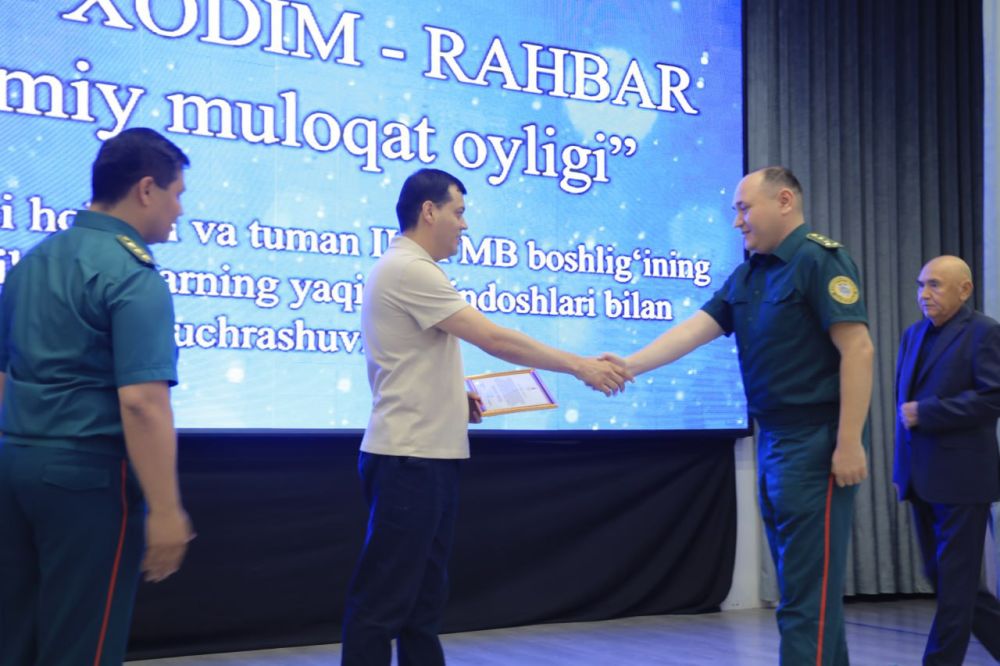 Шу боис, Учтепа тумани Маданият саройида Учтепа тумани бўйича ИИО ФМБ ходимлари ва уларнинг ота-оналари билан Учтепа тумани ҳокими Бунёд Мамаджанов ва Учтепа тумани бўйича ИИО ФМБ бошлиғи полковник Д.М.Мирсадиковлар учрашув ўтказилди.