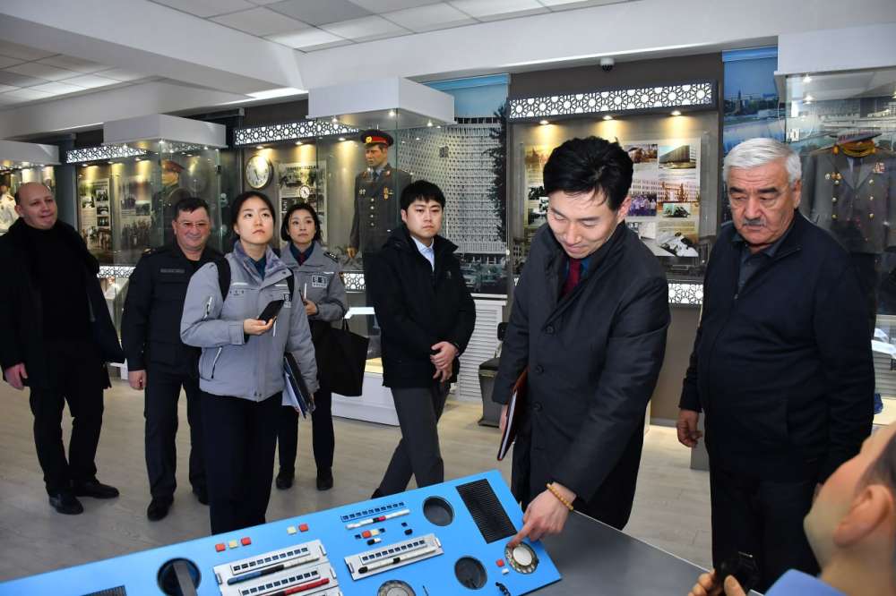 Шу билан бирга, делегация Тошкент шаҳар ИИББ “Шон-шараф” музейига ташриф буюрдилар ва республика ички ишлар органлари шаклланишининг турли босқичларида ишлатилган форма-кийимлари, авто ва мототранспорт, махсус восита ва қуроллар экспозициялари ҳақида маълумот олдилар.