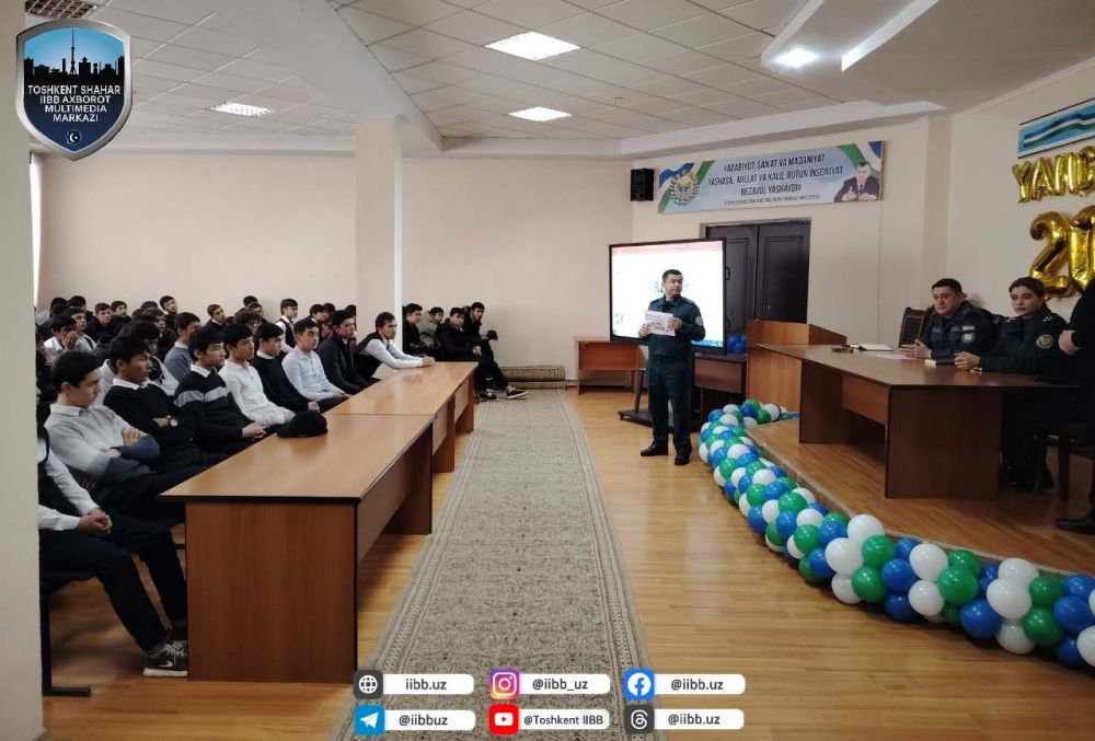 Шайхонтоҳур тумани ИИО ФМБ ходимлари ташаббуси билан “Хавфсиз ва соғлом пойтахт” ойлиги доирасида Шайхонтоҳур туман касб-ҳунар мактаби, Ренессанс таълим университети ҳамда 186-сонли мактабда “Гиёҳвандлик – умр заволи” мавзусида учрашувлар ўтказилди. Тадбирда талаба ёшлар, мактаб ўқувчилари ва ўқитувчи-мураббийлар иштирок этди.
