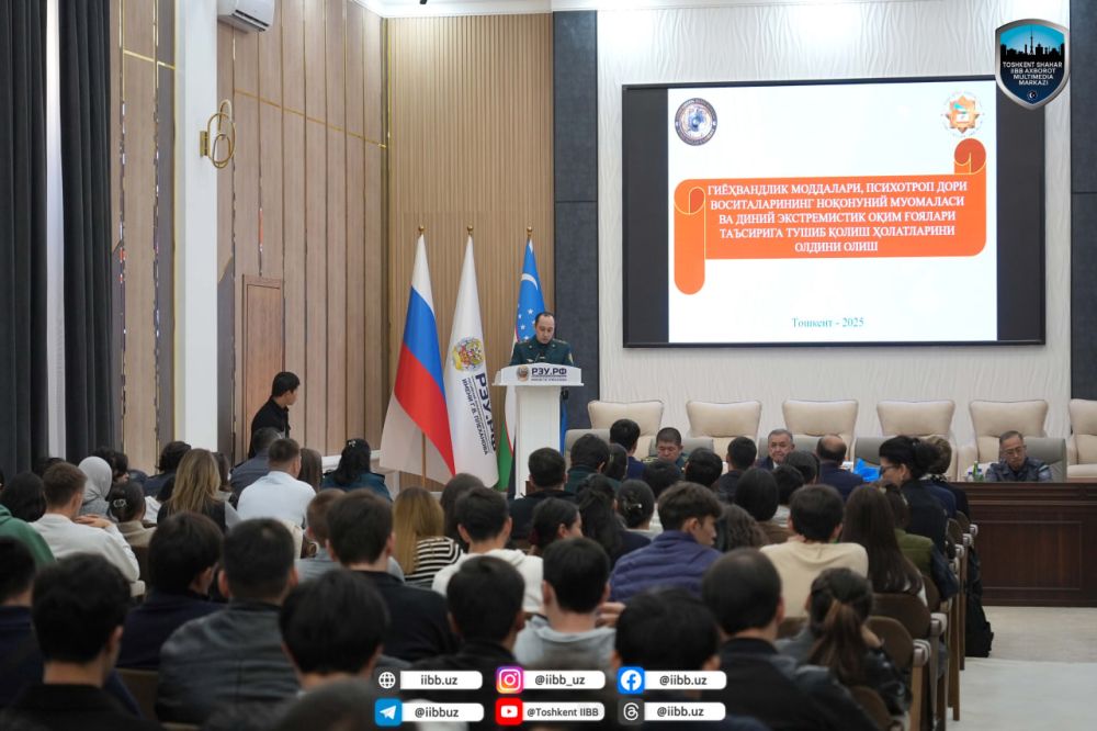 Баркамол авлодни Вояга етказиш, униб-ўсиб келаётган ёшларга доимий ғамхўрлик қилиш давлатимиз сиёсатининг энг муҳим ва устувор йўналишларидан биридир. Қувонарлиси, Ўзбекистон ёшлари бугунги кунда нафақат республика, балки дунё миқёсида ўз ақл-заковати, шижоати, интеллектуал салоҳияти, бахтли келажакка интилувчанлиги билан эътибор қозонмоқда. Таълим-тарбия, маънавий-маърифий, ижтимоий-ҳуқуқий, спорт-соғломлаштириш соҳаларида самарали фаолият юритмоқда. Аммо ижобий натижалар қаторида, ёшлар томонидан содир этилаётган жиноятлар ҳамон юқорилигича қолаётганини афсус билан таъкидламоқ лозим. Куни кеча Тошкент шаҳар ИИББ Пробация бошқармаси ҳамда ИИВ Академияси магистратура тингловчилари ҳамкорлигида “Хавфсиз ва соғлом юрт” ойлиги доирасида Г.В.Плеханов номидаги Россия иқтисодиёт университетининг Тошкент филиали профессор-ўқитувчилари, талабалари билан ўтказилган навбатдаги профилактик тадбирда ана шу масалаларга урғу берилди.