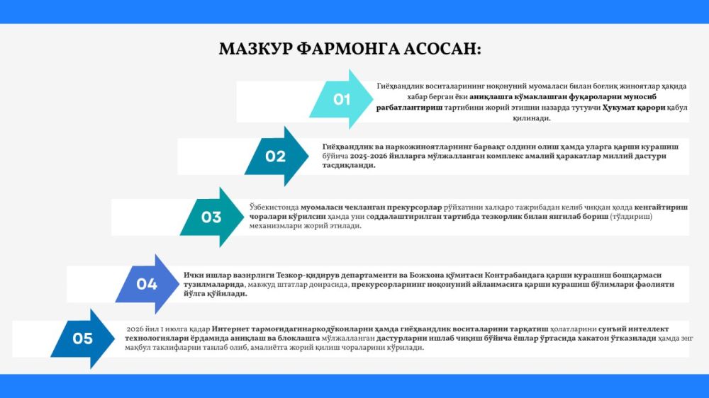 "Аҳоли саломатлиги ва миллат генофондини гиёҳвандлик ва наркожиноятлардан самарали ҳимоя қилиш бўйича комплекс чора–тадбирлар тўғрисида" 03.11.2025 йил ПФ-207