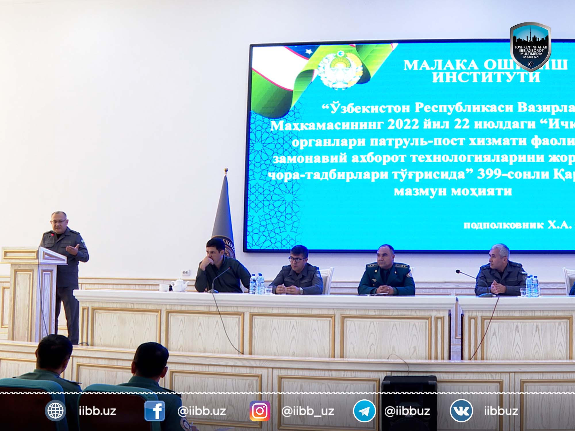 O‘zbekiston Respublikasi Vazirlar Mahkamasining “Ichki ishlar organlari patrul-post xizmati faoliyatiga zamonaviy axborot texnologiyalarini joriy etish chora-tadbirlari to‘g‘risida”gi qaroriga muvofiq, Toshkent shahar IIBB patrul-post xizmati saf bo’linmalari xodimlari uchun “E-patrul” tizimi, planshetlardan foydalanish tartibi yuzasidan kasbiy bilim va ko‘nikmalarini oshirish maqsadida, ikki kunlik sayyor o‘quv-seminar mashg‘ulotlari tashkil etildi. Mashg’ulotlarni IIV Kasbiy tayyorgarlik boshqarmasi, Malaka oshirish instituti, Jamoat tartibini saqlash xizmati, shuningdek, Axborot texnologiyalari, aloqa va axborotni himoyalash boshqarmasi mutaxassislari tomonidan interfaol metodlardan foydalangan holda o’tkazilmoqda.