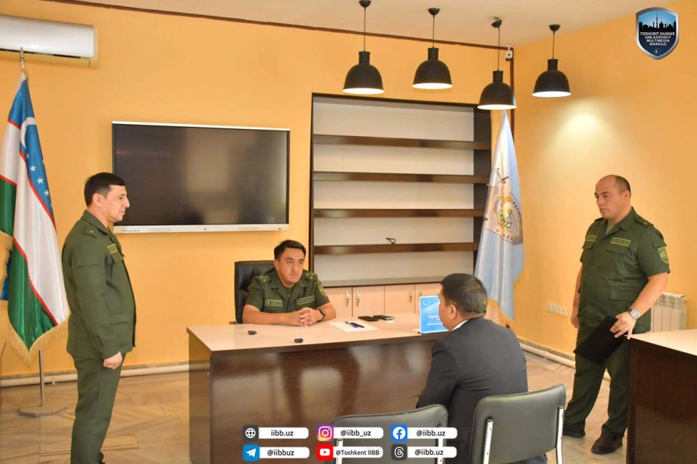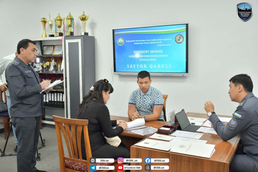 Пойтахтимизнинг Шайхонтоҳур туманида жойлашган Ноширлик-матбаа техникуми биносида ИИББ бошлиғи, полковник Равшан Султанходжаев ҳамда бошқа ҳуқуқни муҳофаза қилувчи органлар масъуллари томонидан навбатдаги сайёр қабул ўтказилди. Унда 54 нафар юридик ва жисмоний шахслар қабул қилиниб, мурожаатлари тингланди. Мурожаатларни ўрганиш чоғида уларнинг 17 таси қабулхонанинг ўзида ижобий ҳал этилди. 14 таси бўйича малакали ҳуқуқий тушунтириш ва тавсиялар берилди. 23 та мурожаатларда келтирилган маълумотларни атрофлича текшириш ва қонуний хулоса чиқариш учун қўшимча муддатлар белгиланиб, ижроси назоратга олинди. Шунингдек, уларнинг ижросини таъминлаш борасида масъулларга тегишли топшириқлар берилди. Шахсий қабул давомида тушган 36 та мурожаатлар бевосита ички ишлар органлари билан боғлиқ бўлиб, улар мазмун-моҳиятига кўра: суриштирув ва тергов ҳаракатлари, пробация ҳисобидан чиқариш, мол-мулк ва пул маблағларини ундириш, ички ишлар органлари ходимлари фаолияти, республика фуқаролигини олиш ҳамда паспорт тизимига оид ва бошқаларни ташкил этди. Таъкидлаш жоизки, бу каби қабуллар жараёнида фуқароларнинг мурожаатлари, саволларига эътибор ва индивидуал ёндашув орқали уларнинг ҳақ-ҳуқуқларига, инсоний манфаатларига ҳурмат ва кафолат намоён этилмоқда.