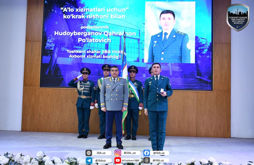 Ўзбекистон Республикаси Қуролли кучлари ташкил этилганлигининг 33 йиллиги ҳамда Ватан ҳимоячилари куни муносабати билан жойларда байрам тадбирлари кенг нишонланмоқда. Зеро, Юртини ҳимоя қилиш, халқ тинчлиги ва осойишталикни таъминлаш йўлини танлаган ҳар бир шахс Ватан ҳимоячиси саналади. Сана муносабати билан Тошкент шаҳар ИИББда ташкил этилган байрамда бош бошқарма ва қуйи тизимлар раҳбарияти, шахсий таркиби ва фахрийлар иштирок этди. Тадбир бошида жанговор байроқ олиб кирилиб, юртимиз мадҳияси янгради. Сўнг пойтахт ИИББ бошлиғи генерал-майор Азиз Ташпулатов иштирокчиларга Ички ишлар вазири генерал-лейтенант Пулат Бобожоновнинг ички ишлар органлари ва фахрийларига байрам табригини ўқиб эшиттирди. Бош бошқарма бошлиғи А.Ташпулатов мамлакатимиз хавфсизлигини таъминлаш, юрт осойишталигини сақлашда куч тузилмаларининг муҳим бўғинларидан бири – ички ишлар органлари ходимларининг вафизаси юксак эканлигини алоҳида таъкидлади. Тизимда амалга оширилаётган кенг кўламли ислоҳотлар натижасида ҳар бир ходим Ватанга ва халққа садоқат билан хизмат қилишни олий бурчи деб биладиган, барча саъй-ҳаракатлар инсон қадри учун йўналтирилган профессионал тузилмаган айланаётганлиги эътироф этилди. Тадбирда Ички ишлар вазирининг буйруғига асосан, шунингдек бош бошқарма бошлиғининг буйруғига асосан мукофотланган ходимларга идоравий кўкрак нишонлари, махсус унвонлар ва фахрий ёрлиқлар тантанали равишда топширилди. Тадбир сўнгида Тошкент шаҳар ИИББнинг “Ниҳол” жамоаси томонидан саҳналаштирилган бадиий чиқишлар ва ватанпарварлик руҳидаги куй-қўшиқлар янгради.