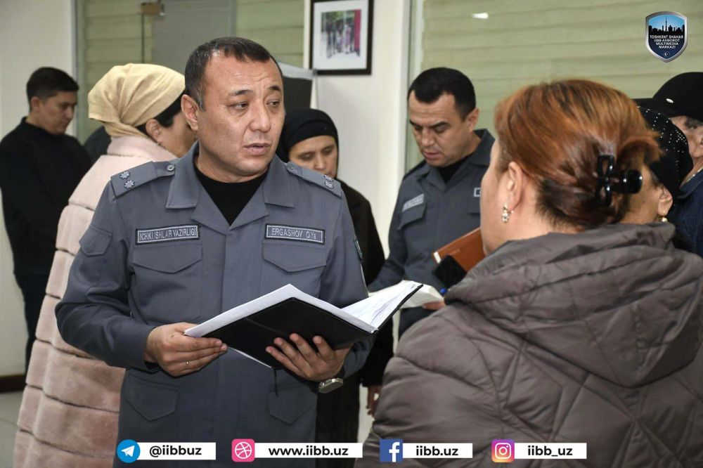 Хабарингиз бор, Тошкент шаҳар ички ишлар органларида жисмоний ва юридик шахсларнинг мурожаатлари билан ишлаш тизимини такомиллаштиришга қаратилган меъёрий ҳужжатга асосан, жорий йилнинг 27 ноябридан “Ҳар бир мурожаатга – адолатли ечим” шиори остида “Мурожаатлар ойлиги” ўтказиб келинмоқда. Ойлик доирасида куни кеча Тошкент шаҳар ИИББ бошлиғи полковник Равшан Султанходжаев томонидан шаҳар аҳолисининг мурожаатларини ўрганиш мақсадида навбатдаги шахсий қабули ўтказилди. Унда 55 нафар жисмоний ҳамда юридик шахсларнинг мурожаатлари тингланиб, ҳал этиш чоралари кўрилди. Ўрганишлар натижасида мурожаатларнинг 20 таси қабулхонанинг ўзида ижобий ечимини топди, 2 таси бўйича малакали ҳуқуқий тушунтиришлар берилди. 33 та мурожаатларда келтирилган важларнинг келиб чиқиш сабабларини аниқлаш, атрофлича ўрганиш талаб этилгани боис ижроси бўйича масъулларга топшириқлар берилиб, аниқ ижро муддатлари ўрнатилди. Қабул қилинган мурожаатлар мазмунига кўра: суриштирув-тергов, мол-мулк ва пул маблағларини ундириш, ички ишлар органларига хизматга қабул қилиш ва қайта тиклаш, оммавий тадбирлар ўтказиш, ижтимоий ва иқтисодий масалалар, йўл-транспорт ҳодисаларини расмийлаштириш, оила-турмуш доирасидаги низолар, ички ишлар ходимлари хизмати билан боғлиқ масалаларни ташкил этди. Бу каби ваколатли раҳбарларнинг аҳоли мурожаатларини тинглаш, уларнинг қонунда белгиланган ҳақ-ҳуқуқларини кафолатлаш борасида олиб борилаётган ишлари пойтахт ИИББ ҳудудий тузилмалар раҳбарлари томонидан ҳам тизимли равишда амалга оширилмоқда.