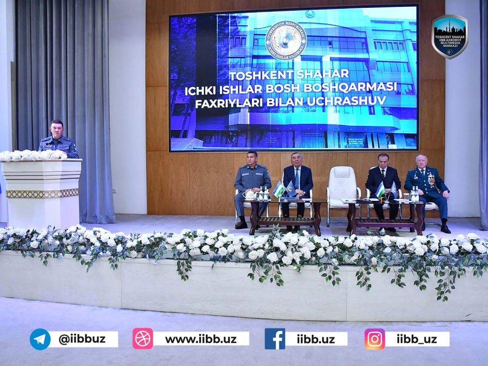 Ўзбекистон Республикаси Ички ишлар вазирининг ўринбосари, генерал-майор Даврон Назармухамедов Тошкент шаҳар ИИББда пойтахтимиздаги ички ишлар фахрийлари билан очиқ мулоқот тарзида учрашув ўтказди.