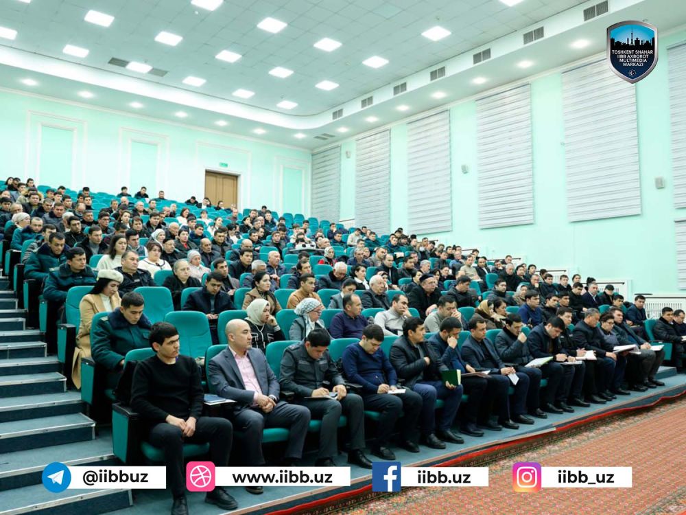 Шайхонтоҳур туманида юртбошимиз томонидан жорий йилнинг 3 январь куни имзоланган ПҚ-1 сонли Қарорда белгиланган чора-тадбирлар ижросини таъминлаш ҳамда маҳаллаларда амалга оширилаётган ишлар юзасидан йиғилиш бўлиб ўтди. Халқаро Ислом Академиясида ўтказилган мазкур учрашувда туман сектор раҳбарлари, маҳалла еттилиги, масъул идоралар ва ташкилот мутасаддилари ҳамда соҳавий хизмат раҳбарлари иштирок этди.