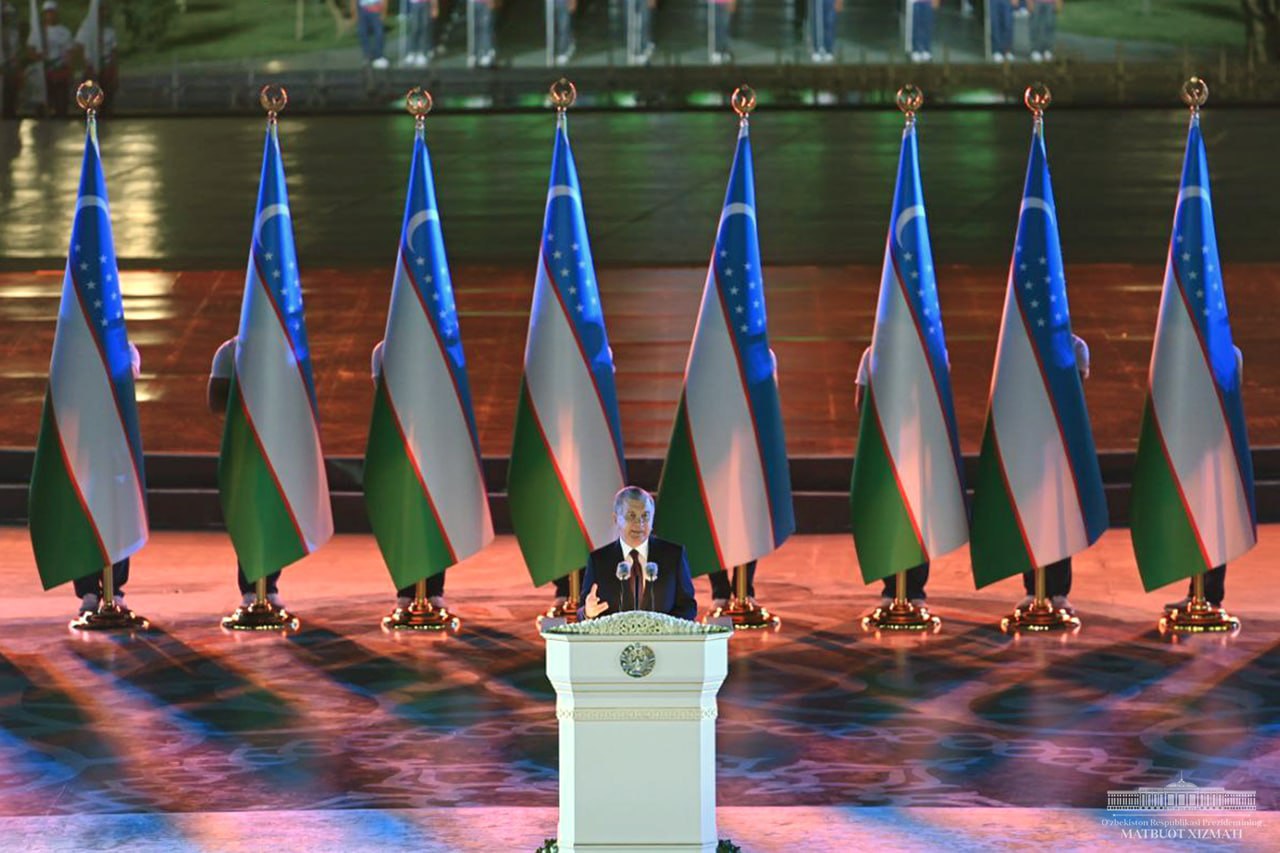 Президент Ёшлар кунига бағишланган байрам тадбирида нутқ сўзламоқда.
