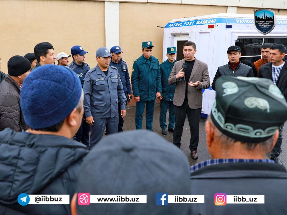 “Тошкент шаҳрида криминоген вазиятга салбий таъсир қилувчи омилларни илмий ёндашув асосида комплекс таҳлил қилиш ҳамда ҳамкорликда бартараф этиш юзасидан чора-тадбирлар дастури” ҳамда Тошкент шаҳар ИИББ ва ИИВ Академияси бошлиқларининг қўшма фармойишининг ижросини таъминлаш мақсадида Бектемир туманидаги “COMPASS савдо мажмуаси”, “Қўйлиқ буюм бозори” ҳамда “Водий автотураргоҳ” ҳудудларида Тошкент шаҳар ИИББ ППХБ ва Бектемир туман ИИО ФМБ масъул ходимлари, ИИВ Академияси курсантлари ҳамкорликда жамоат хавфсизлигини таъминлаш, ҳуқуқбузарликларнинг барвақт олдини олиш ва жиноятчиликни жиловлаш борасида манзилли чора-тадбирларни амалга оширмоқда.