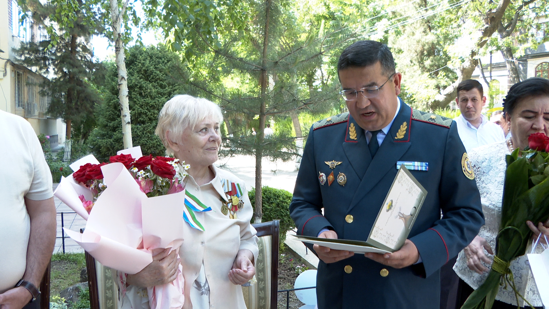 “9 май – Хотира ва қадрлаш куни” муносабати билан Тошкент шаҳар ИИББ бошлиғи генерал-майор Азиз Ташпулатов уруш фахрийларидан хабар олди. Иккинчи жаҳон урушида фашизмга қарши мардоновор кураш олиб борган, ғалаба учун ўзининг муносиб хиссасини қўшган қахрамонларимиз Афанасий Данилович, шунингдек Вера Анатольевналарнинг хонадонида байрам тадбири уюштирилди. Уларга Президентимиз томонидан йўлланган байрам табриги ўқиб эшиттирилиб, давлатимиз томонидан берилган 15 миллион сўм пул мукофоти ва “Мустақиллик” монументи ҳамда совғалар тантанали равишда топширилди. Бугунги тинч ва осойишта ҳаётимиз учун курашган мана шундай инсонлар жасорати, улар кечирган оғир кунлар ёди авлодлар хотирасида ибрат мактаби бўлиб, абадий мухрланиб қолади. Зеро, инсон хотира билан тирик, қадр билан улуғ! Ўзбек халқи юрт фаровонлиги ва тинчлиги йўлида жонбозлик кўрсатган мард фарзандларини ҳеч қачон унутмайди.