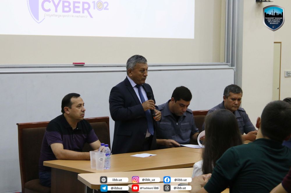 Мирзо Улуғбек тумани ИИО ФМБ бошлиғи подполковник Сардор Мирзараимов, ИИО ФМБ масъуллари, мутахассислар ва талабалар билан ўтказилган мазкур учрашувда бу турдаги жиноятларнинг содир этиш усуллари, улардан ҳимояланиш механизмлари, жиноят учун жавобгарлик муқаррарлиги тушунтирилди.