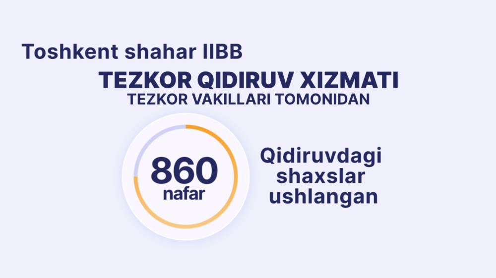 Тошкент шаҳар ИИББ Тезкор қидирув хизмати тезкор вакиллари томонидан 860 нафар қидирувдаги шахслар ушланган.