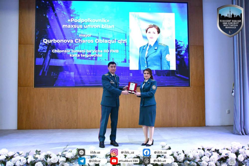 Тантанали тадбирни Тошкент шаҳар Ички ишлар бош бошқармаси бошлиғи, полковник Равшан Султанходжаев очиб, барча йиғилган аёлларни байрам билан табриклади. Бош бошқарма бошлиғи аёл бўлишига қарамай, сафдаги эркаклар билан елкама-елка туриб, давлатига, халқига садоқат билан хизмат қилаётган аёл ходималарга ўз эҳтиромини билдирди. Тадбир давомида юқори натижаларга эришган ходималарга мукофот ва унвонлар топширилди. Сўнгра Юнусобод тумани ИИО ФМБ ҲПБ Хотин-қизлар масалалари бўйича катта инспектори, подполковник Шаҳноза Абзалованинг кўп йиллик хизматлари эътироф этилиб, давомли олқиш ва қарсаклар остида нафақага кузатилди. Шаҳноза Абзалова сўз олиб, кўрсатилган ҳурмат ва эҳтиром, меҳнатининг муносиб қадрлангани учун Бош бошқарма раҳбариятига миннатдорлик билдириб, ёшларга ҳалол ва самарали ишлаши, барчага ёруғ юз билан нафақага чиқиш бахтига муяссар бўлиш тилагини билдирди.