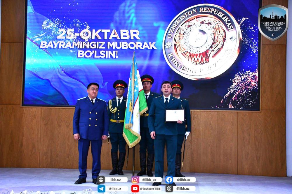Тадбир давомида ўз хизмати билан касбдошларига ўрнак бўлган бир қатор ходимлар Ички ишлар вазири, Тошкент шаҳар ИИББ бошлиғи ва бошқа ҳуқуқни муҳофаза қилувчи органлар раҳбарларининг кўкрак нишони, фахрий ёрлиғи ва эсдалик совғалари билан тақдирланди.