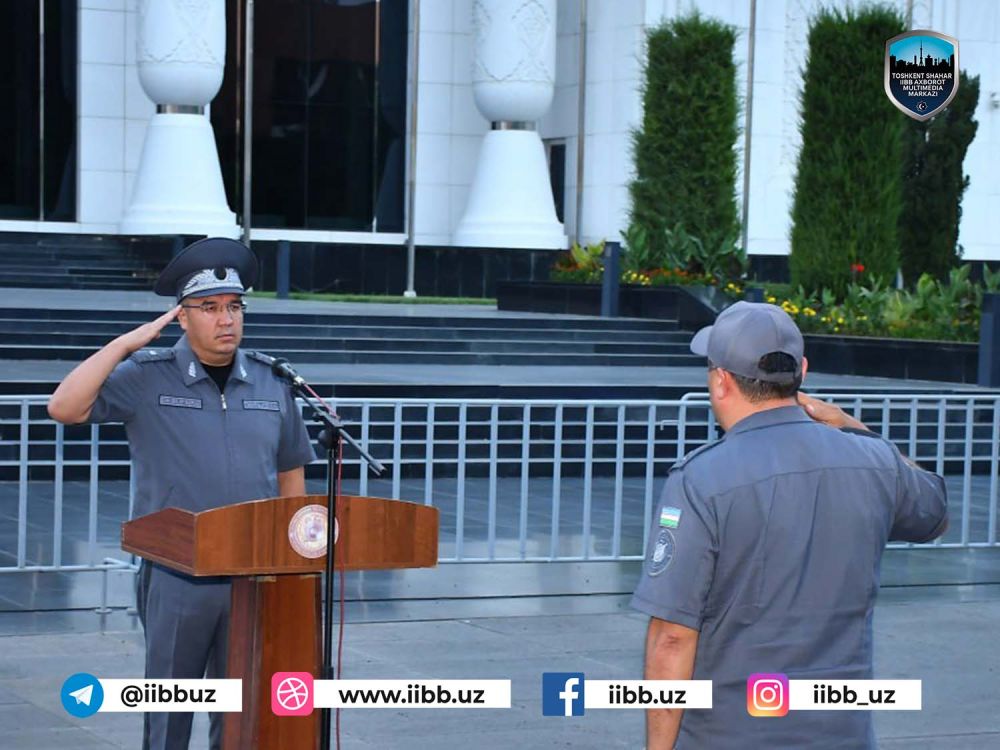 Тунги хизматга жалб қилинган ходимлар учун навбатдаги йўриқнома Тошкент шаҳар ИИББ бошлиғи генерал-майор Азиз Ташпулатов бошчилигида “Ўзбекистон” халқаро анжуманлар саройи олдида бўлиб ўтди.
