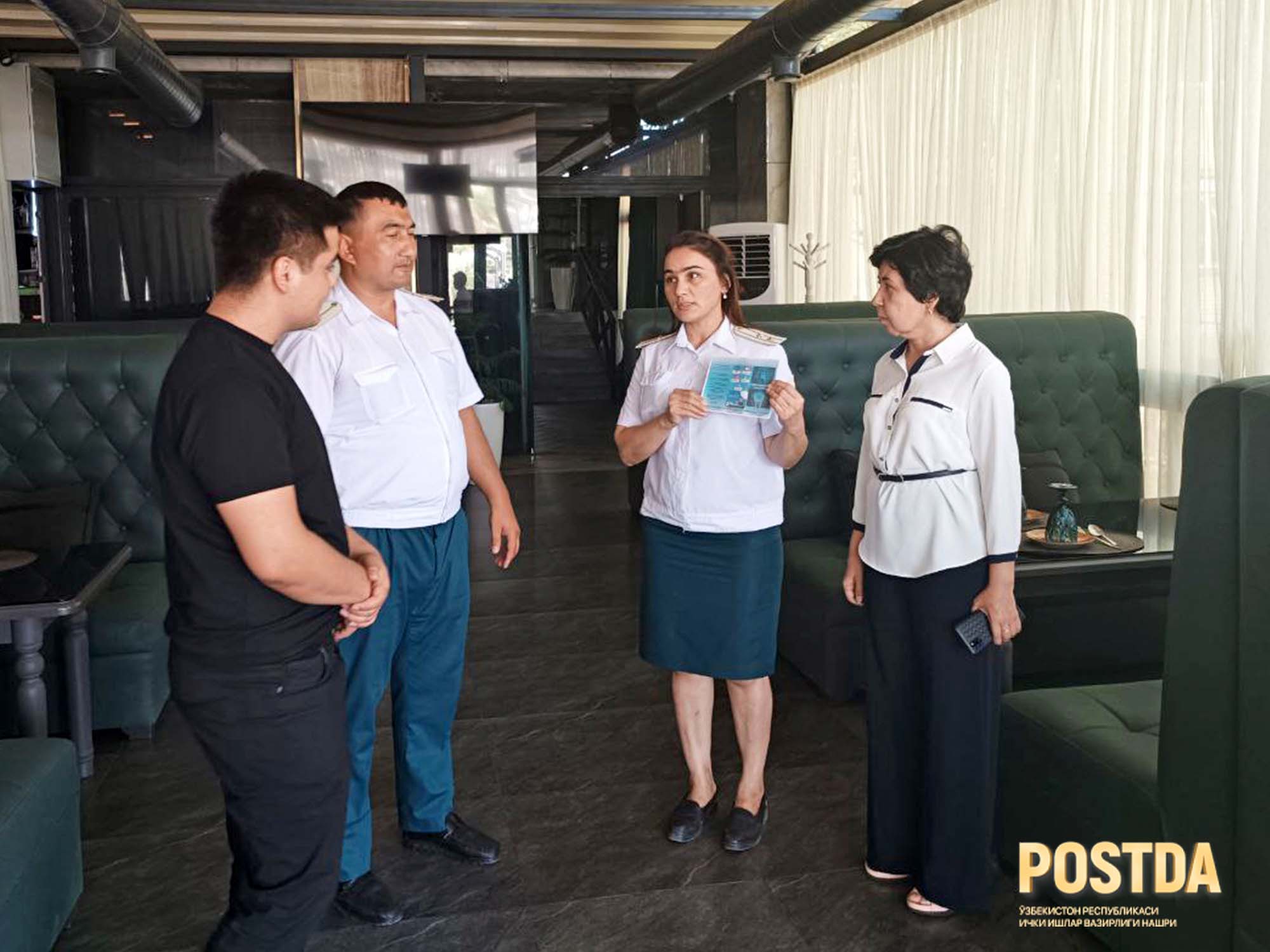 «Пайшанба – Ҳуқуқбузарликлар профилактикаси куни» Шайхонтоҳур туманида ҳам мунтазам равишда ўтказиб келинмоқда. Жумладан, туман ИИОФМБ 3-сонли ИИБ ҲПБ хотин-қизлар масалалари бўйича катта инспектор, подполковник Г. Ишонхонова, профилактика инспектори, катта лейтенант Ж. Жўраев ҳамда «Шайхонтоҳур» маҳалласи фаоллари билан ҳамкорликда озиқ-овқат дўконлари ва кафеларда пластик карталардан ноқонуний пул маблағлари ечилишининг олдини олиш тўғрисида тушунтириш ишлари олиб борилди.